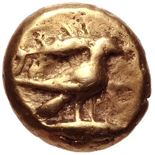 | Описание аверса | Bird standing between two tunnies, all facing right. |