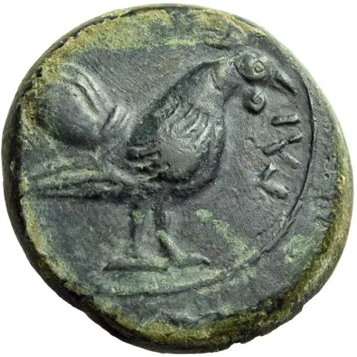 Obverse description Cock standing right. To right, ZIZ in Punic script.