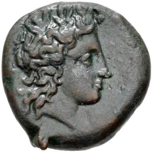 | Descrizione del dritto | Laureate head of Sikelia right; tiny retrograde Γ to left, monogram below chin. |