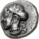| Aversbeschreibung | Archaic female head left, with hair bound in sakkos and wearing necklace. Letters ΓΑΡ behind neck |