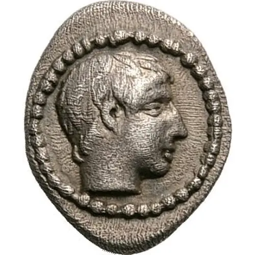 | Descripción del reverso | Forepart of horse to right within shallow incuse |