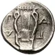 | Descrição do reverso | Six-stringed lyre and all within shallow incuse circle |