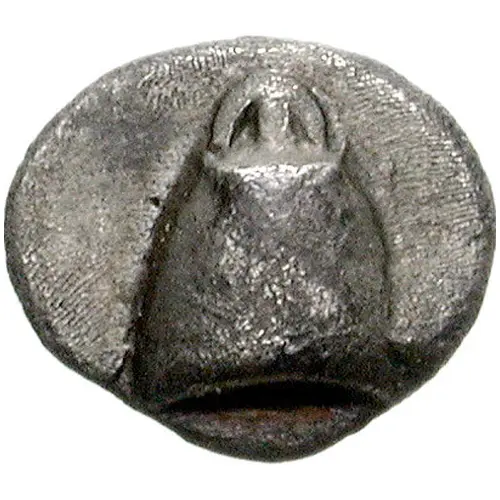 | Obverse description | Half wheat grain, with sprouting end facing upward |