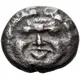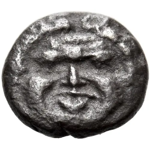 | Obverse description | Facing head of a Gorgon with extended tongue. |