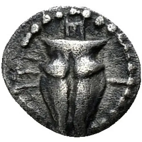 | Reverse description | Head of bridled horse to left and all within incuse square. |