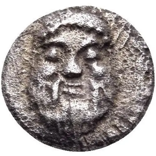 | Obverse description | Facing head of Silenos. |