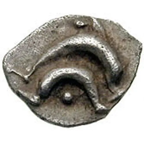 | Obverse description | Two dolphins with a pellet below |