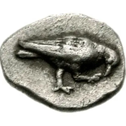 | Reverse description | Dove flying right, letter E to upper right, H to lower right and all within incuse square |