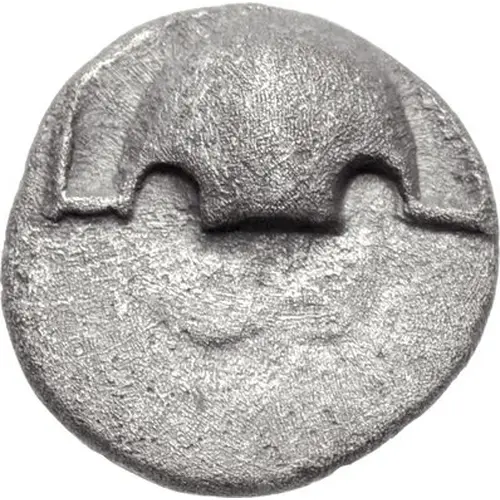 | Reversbeschreibung | Horse head facing right and T-A flanking. All within incuse flat circle with curved edge |