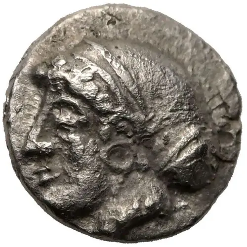 | توضیحات روی سکه | Female head left, hair bound in sakkos. |