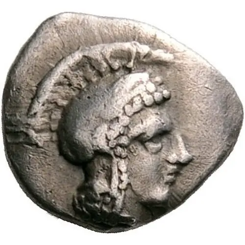 | Obverse description | Head of Athena to right, wearing simple earring and crested Attic helmet with raised cheek pieces |