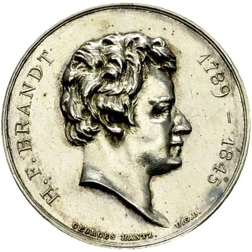 | Opschrift voorzijde | H. F. BRANDT 1789-1845 GEORGES HANTZ U. G. D. |