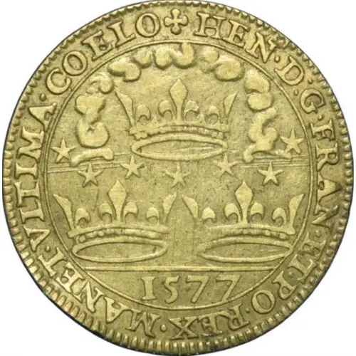 | Obverse lettering | + HEN. D:G. FRAN. ET. PO. REX. MANET. VLTIMA. COELO. 1577 |