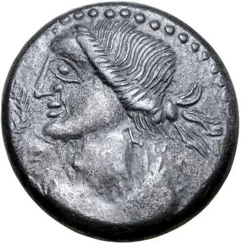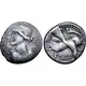 | Obverse description | Bare-headed male bust left, hair tied in knot behind; branch before. |