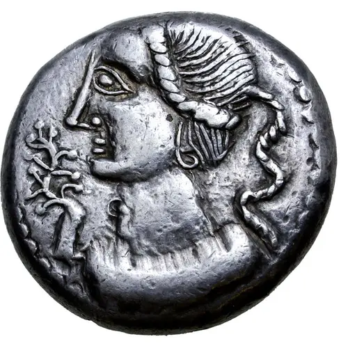 | Obverse description | Male bust left; tree before, ribbon behind. |