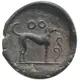 | Reversbeschreibung | Hound standing right; two annulets above, volute to right. |