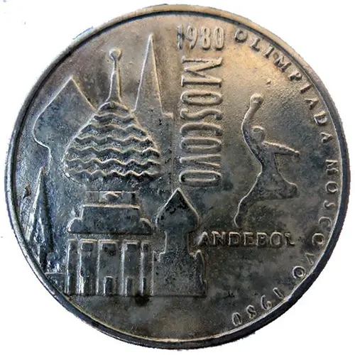 | Obverse lettering | OLIMPÍADAS MOSCOVO 1980 1980 MOSCOVO ANDEBOL (Translation: Moscow Olympics Handball) |