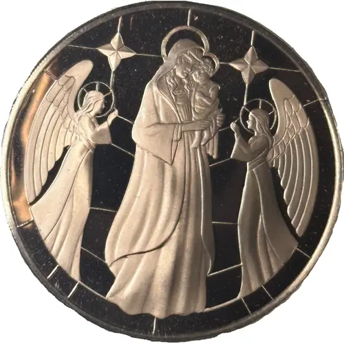 | Ön yüz açıklaması | Mary holding baby Jesus with an Angel on each side |
