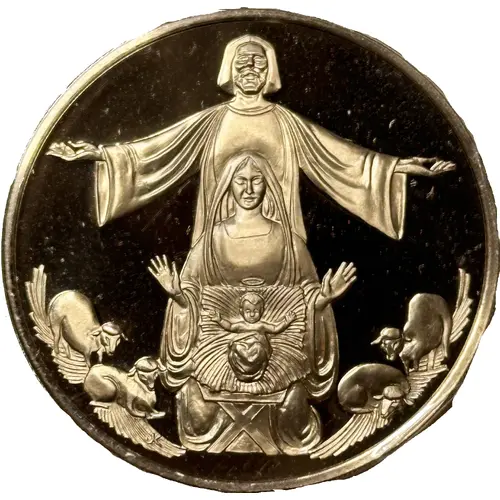 | Obverse description | Joseph, Mary and Baby Jesus with arms spread open |