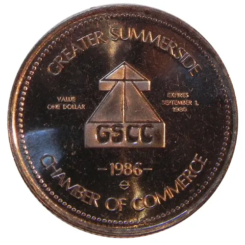 | Obverse lettering | GREATER SUMMERSIDE Value Expires One Dollar September 1, 1986 GSCC 1986 CHAMBER OF COMMERCE |