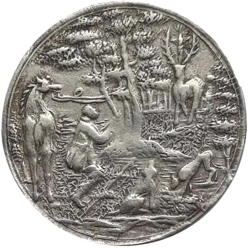 | Obverse description | Scene with a Hunter and a horse, along with hounds, hunting a deer in a forest |