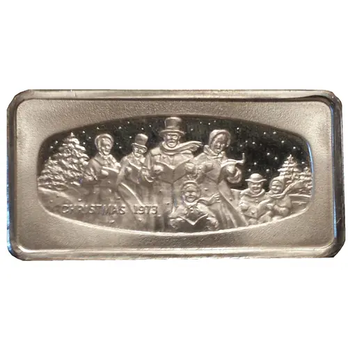 | Obverse description | Christmas 1973 with snowy scene of carolers. |
