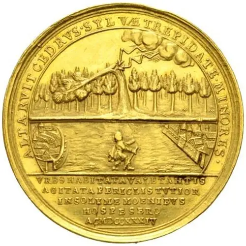 | Reverse description | Sea scene with angel and four ships, lettering around and below in 11 lines |