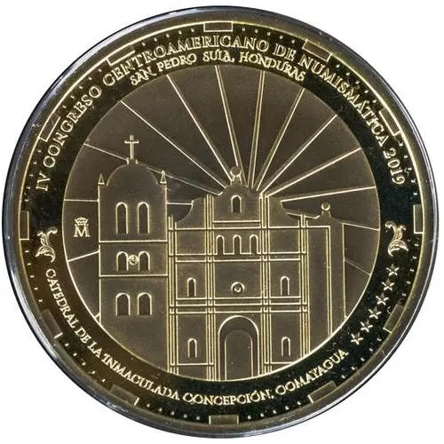 | Legenda do anverso | IV CONGRESO CENTROAMERICANO DE NUMISMÁTICA 2019 SAN PEDRO SULA, HONDURAS CATEDRAL DE LA INMACULADA CONCEPCIÓN, COMAYAGUA ★★★★★★ (Translation: IV Central American Numismatic Congress 2019 San Pedro Sula, Honduras Immaculate Conception Cathedral, Comayagua) |