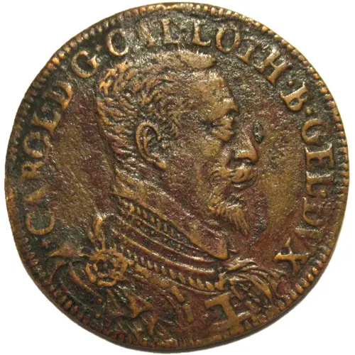 | Obverse description | Bust in armor and flat collar of Charles III bearing the Jerusalem cross to the right. Titulature all around. |