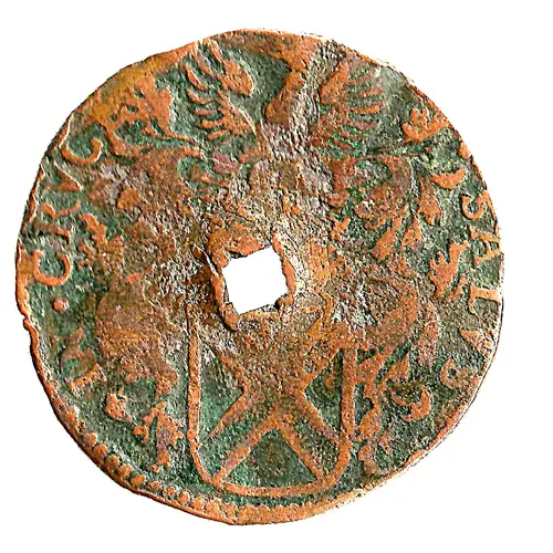 | Reverse description | A palace and gardens illuminated by a radiant sun surrounded by a crowned C |