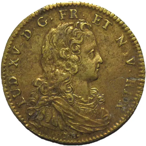 | Obverse description | Right cuirassed and draped bust of the young King Louis XV. Titulature all around, signed J. B. under the bust (type Guéant Prieur 520A). |