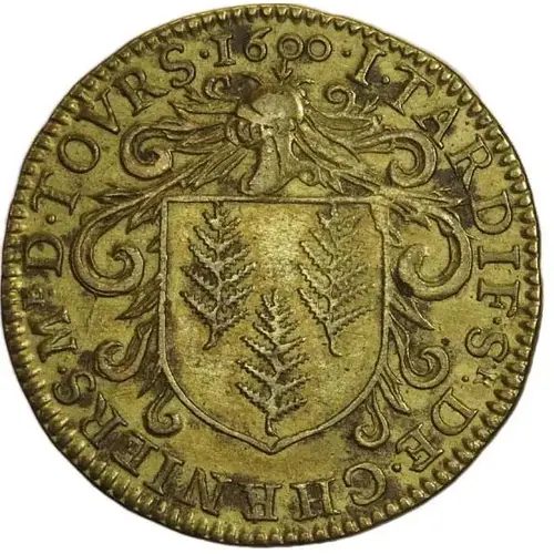 | Obverse description | Shield bearing the arms of Jean Tardif, surmounted by a mantled helmet. It bears Or, three fern leaves Vert, two and one. |