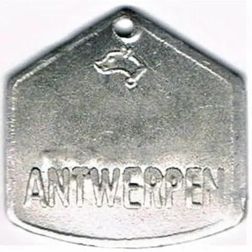 | Obverse description | Stylized head of a dog in left profile in relief. |