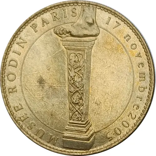 | Popis líce | Simple row of small rounded details inside the listel. Image of Rodin`s sculpture. The legend around the edge. |