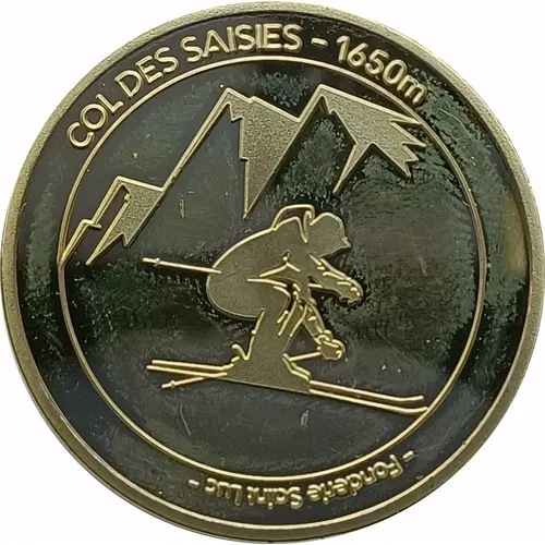| Obverse description | Text in periphery. Representation of the mountains with a skier. |
