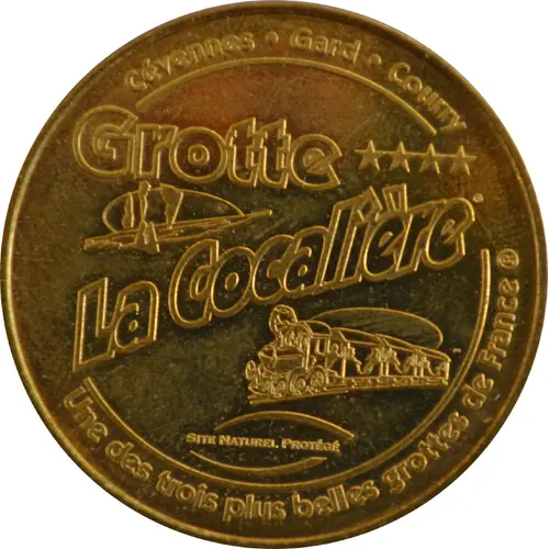 Small tourist train of the cave of Cocalière de Courry, French commune of the department of Gard, Occitanie region. |