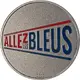 The front of this medallion features the colorized Allez Les Bleus emblem, red and blue in tribute to the colors of the French national team. |