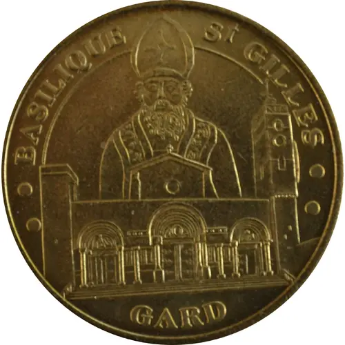 Representation of the Saint above the basilica of Saint Gilles, French commune of the department of Gard, Occitanie region. |