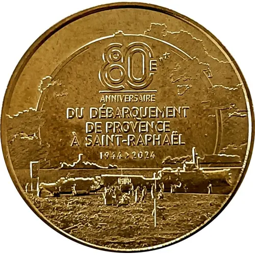 | Legenda do anverso | 80E ANNIVERSAIRE DU DEBARQUEMENT DE PROVENCE A SAINT-RAPHÄEL 1944 - 2024 |