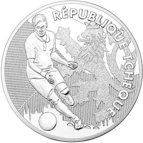 | Obverse description | A player from the Czech Republic soccer team, ball at his feet. In the background, a crowned lion and a city. In the background, the Czech flag. |