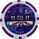 (fr) Le casino stylisé en noir, fenêtres en blanc au dessus d`un cartouche, le tout sur un fond de couleur violet foncé et l`ensemble dans un cercle blanc doublé d`un deuxième cercle mauve et blanc. Valeur faciale en exergue. |