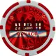 (fr) Le casino stylisé en noir, fenêtres en blanc au dessus d`un cartouche, le tout sur un fond de couleur rouge et l`ensemble dans un cercle blanc doublé d`un deuxième cercle rouge et blanc. Valeur faciale en exergue. |