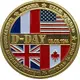 Peripheral text. French and American flags at top, British and Canadian flags at bottom. |