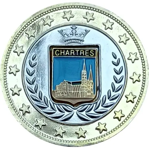 | Obverse description | (fr) Listel composé de 18 étoiles à 5 branches. Au centre, un blason couronné représentant la cathédrale de Chartres, commune française dans le département de l`Eure et Loir, région Centre Val-de-Loire. |