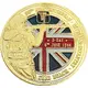 British soldier of the 50th Infantry Division standing shouldering his rifle with the United Kingdom flag as a background. Different from Plum at 10 o`clock. Badge of the 50th at 12 o`clock. |