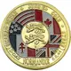Text in periphery around four flags (U.S.A., Canadian, British and French) with in its center two lions. Different from Prune at 6 o`clock. |