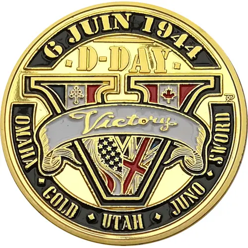 | Obverse lettering | 6 JUIN 1944 D -DAY V Victory OMAHA ° GOLD ° UTAH ° JUNO ° SWORD |