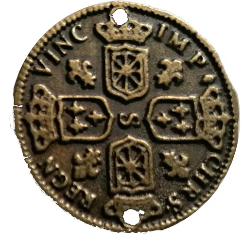 | Obverse description | Three small ermines in a coat of arms under a crown at 6 and 12 o`clock. Coat of arms under a crown at 3 and 9 o`clock. A fleur-de-lys between each blazon and an S in the center of the token. |