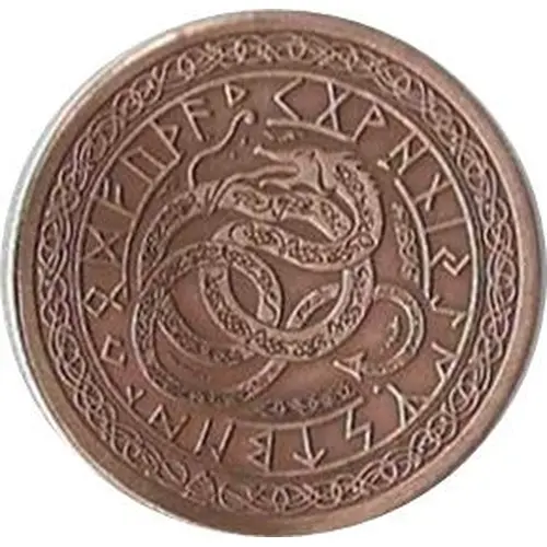 | Описание реверса | Image of Jörmungandr in center facing left, surrounded by runes. Both sides the same. |