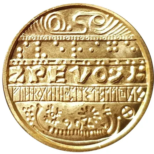 | Descripción del anverso | Writing in various `alphabets`, such as Braille and Runes. On the top it is written `@.se`. |